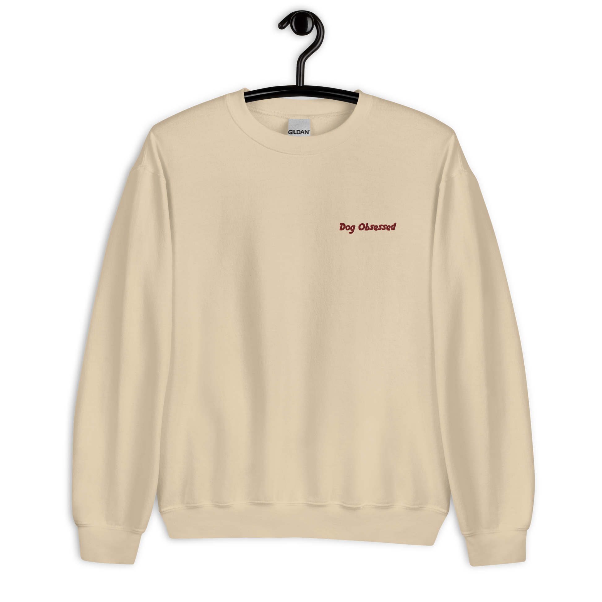 Our “Dog Obsessed” embroidered sweatshirt is designed for those who live and breathe all things canine.