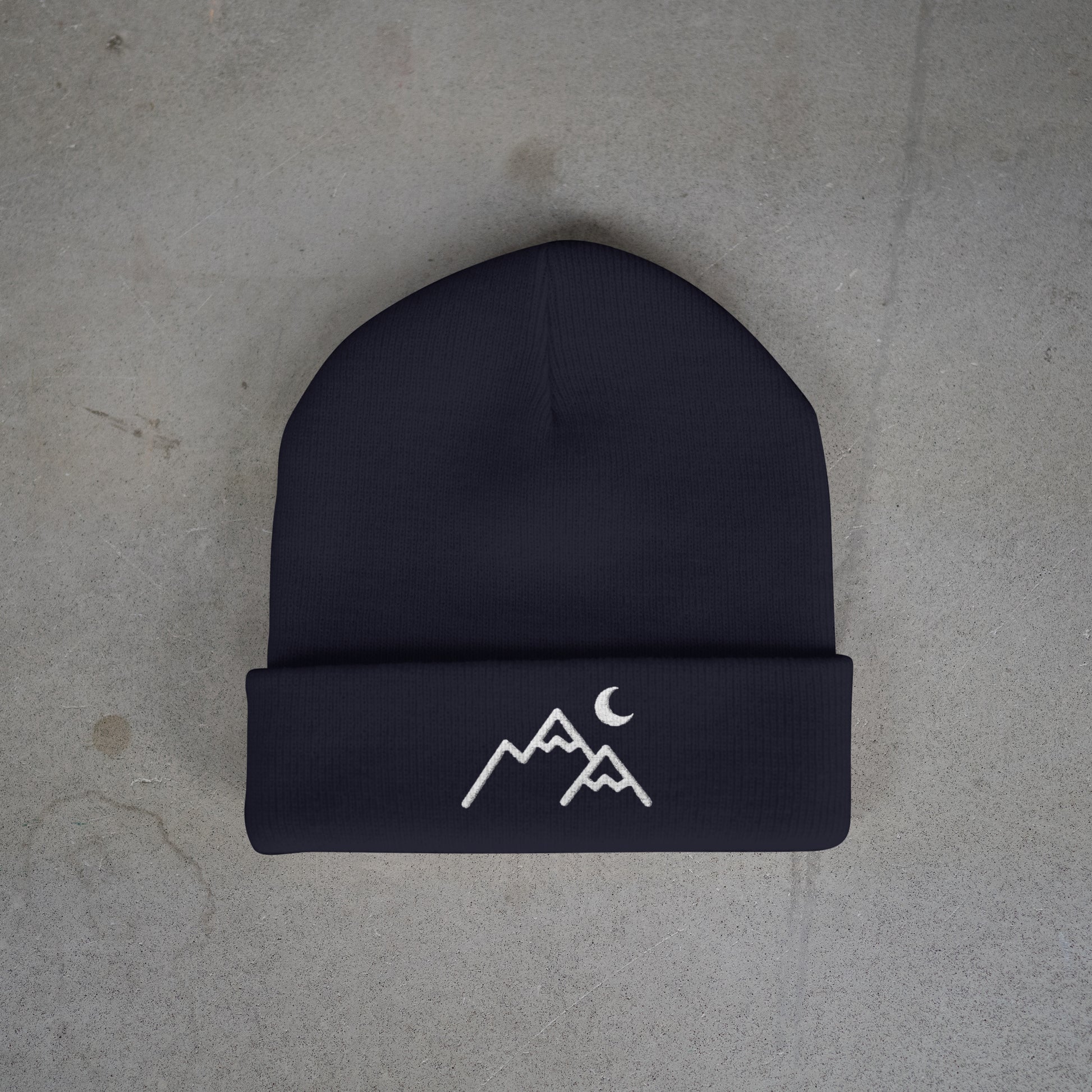 Embrace the calm beauty of nature 🌙 with our Minimal Mountain & Moon embroidered beanie.